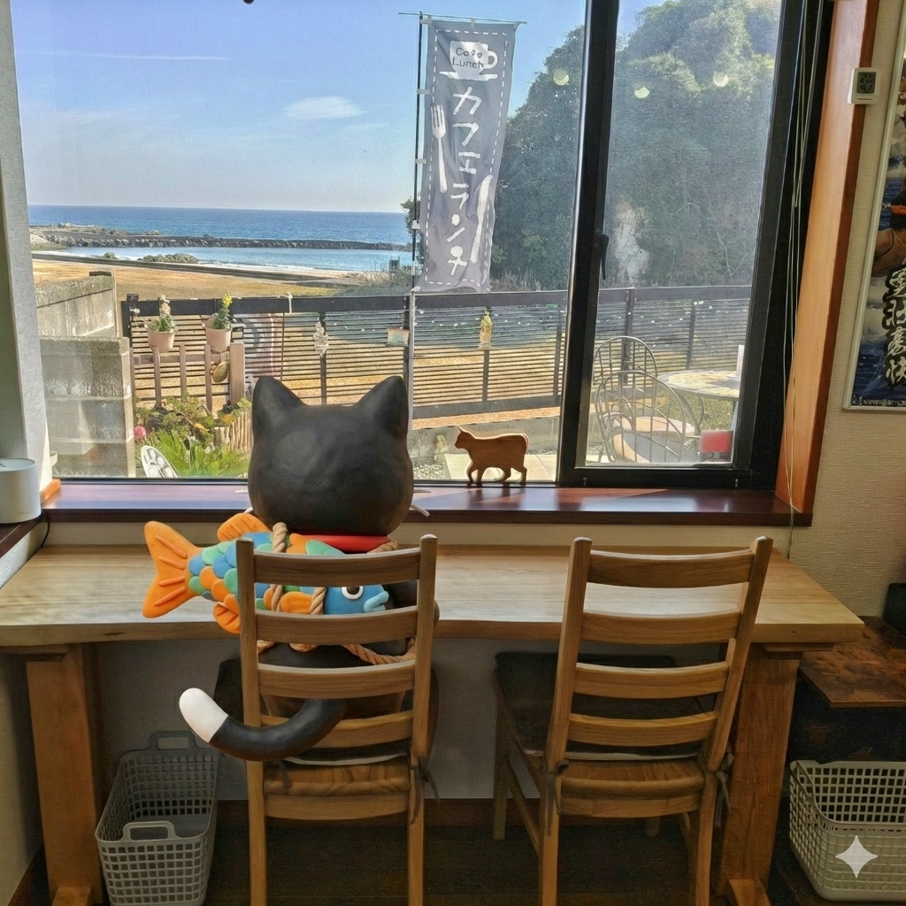 今日は天気予報にも恵まれ、窓辺からは、海と空が静かに向かい合う景色をご覧いただけます。