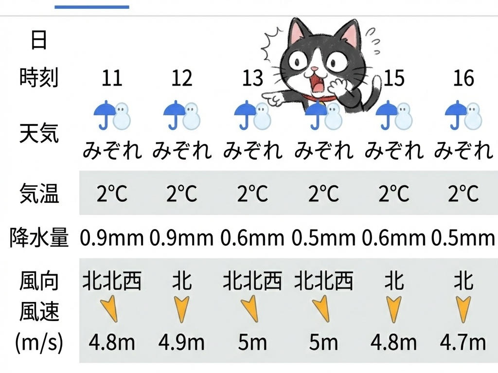 今朝の気温は5.4℃。数字だけ見れば高めですが、北風が強く、体感的には氷点下のような冷え込みです。 天気…