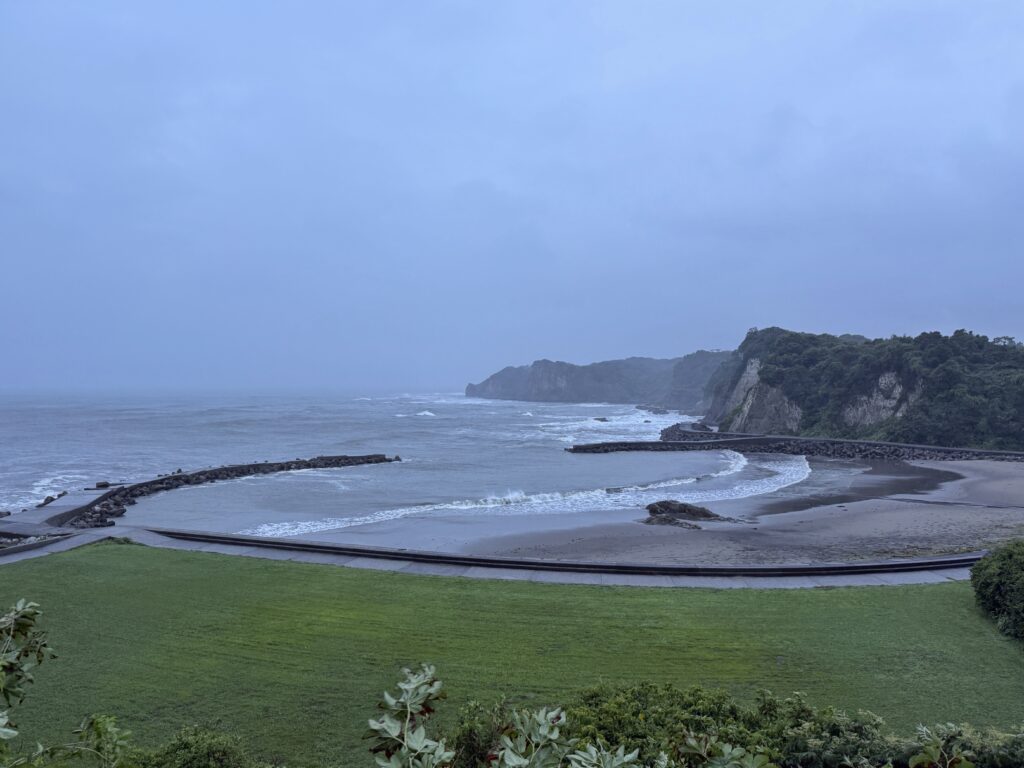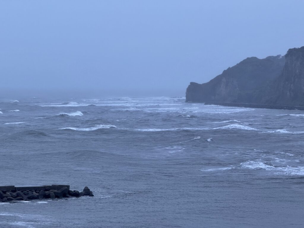 今朝の海はまだ時化ており、風も残っていますが、本日も午前11時から午後3時まで営業いたします。静かな時間を過ごしにお越しいただければ、嬉しく思います。