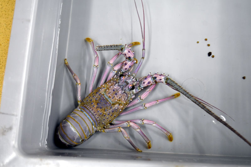大原港では、珍しい「白いイセエビ」に続き、今度は同じく珍しい「青いイセエビ」が水揚げされました。普段は赤が当たり前の世界に、不意に現れる白や青。どちらもめったにお目にかかれない存在であり、海の神秘を感じさせます。次はどんな色が現れるのか――想像するだけで胸が高鳴ります。
