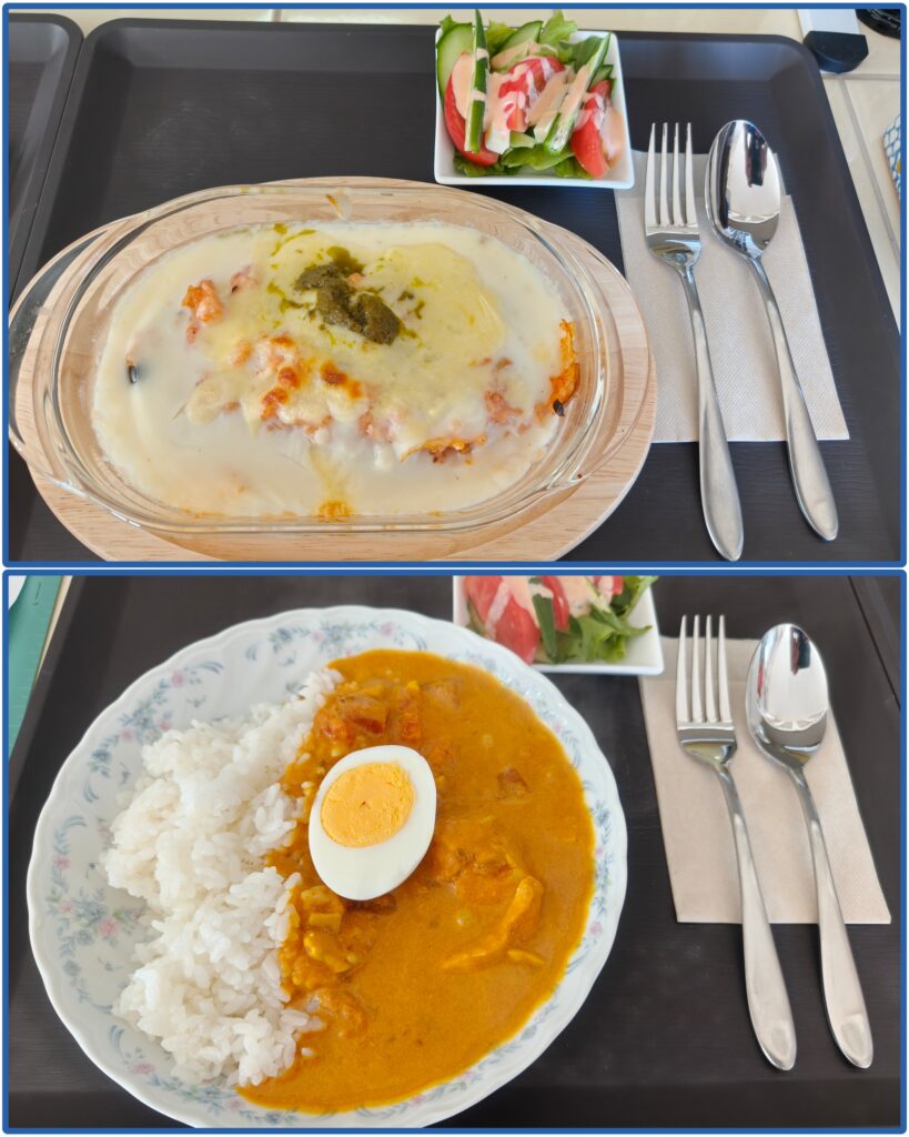 本日の日替わり軽食は「シーフードドリア」です。もちろん定番メニューの「スリランカ風スパイスカレー」もあります。