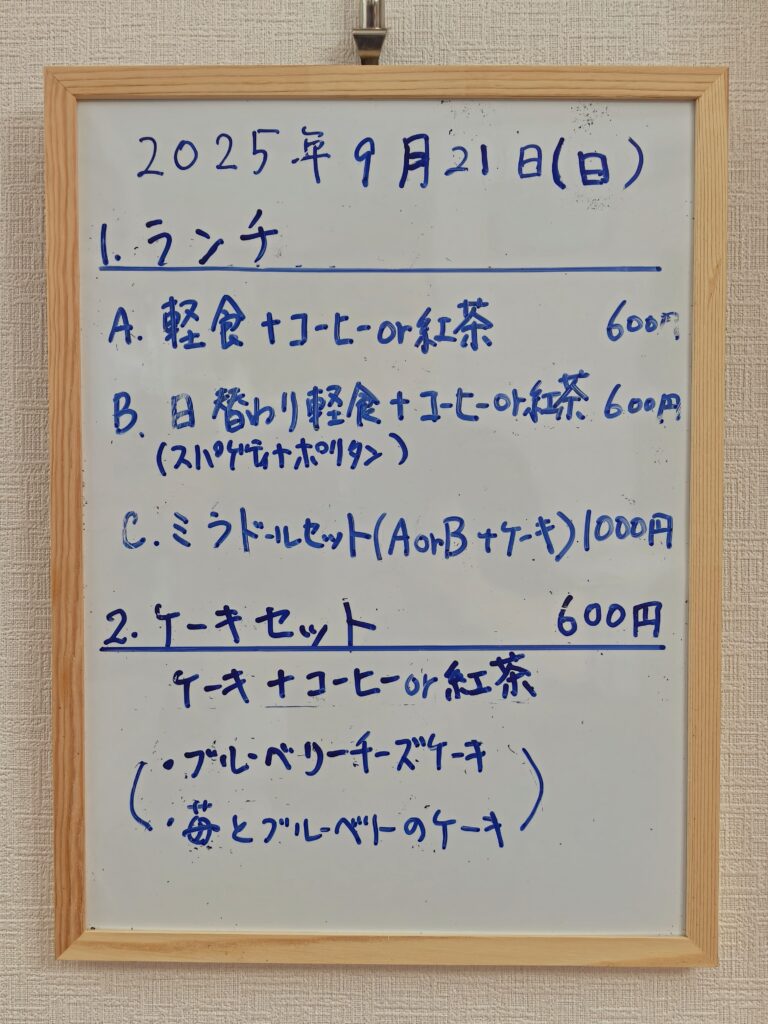 本日の日替わり軽食は「スパゲッティ ナポリタン」です。もちろん定番メニューの「スリランカ風スパイスカレー」もあります。
