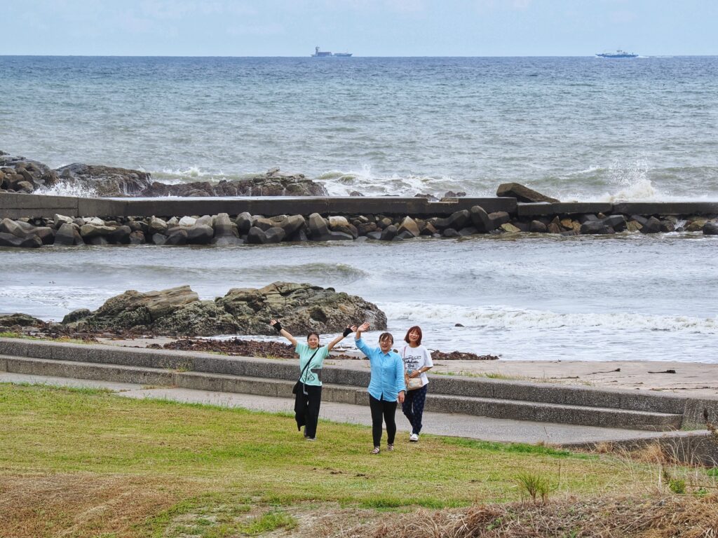 最初のお客様は、昨晩一宮町で演奏とトークを披露して下さった conviano の皆様。店内に入る前にベランダから「たぐりゃ」の海を眺め、そのあと階段を降りて浜辺を散策されました。