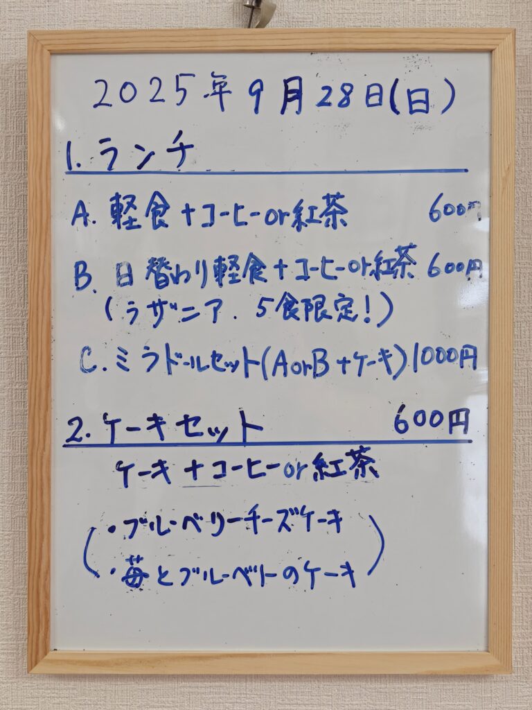 好評の新メニュー「ミラドール・セット」は、日替わり軽食(スリランカ風スパイスカレーなどの軽食もOK)+ケーキ+コーヒーまたは紅茶で1,000円です。