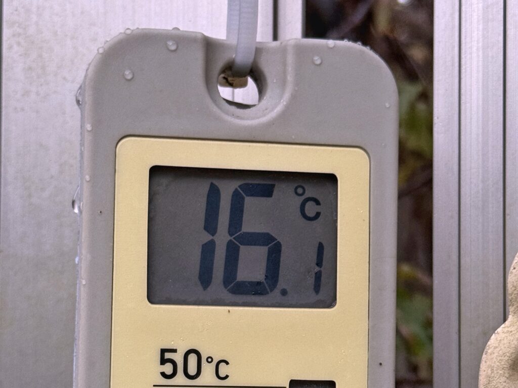 今朝の気温は16℃。昨日の早朝が22℃でしたから、一夜にして6℃の差が生まれました。湿度の高さと急な冷え込みで濃霧注意報が出ていますが、早朝のうちはモヤもほとんどなく、ひんやりとした空気が肌を包む静かな朝となりました。
