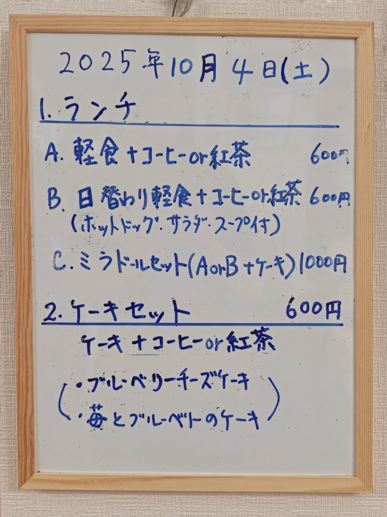 好評の新メニュー「ミラドール・セット」は、日替わり軽食(スリランカ風スパイスカレーなどの軽食もOK)+ケーキ+コーヒーまたは紅茶で1,000円です。