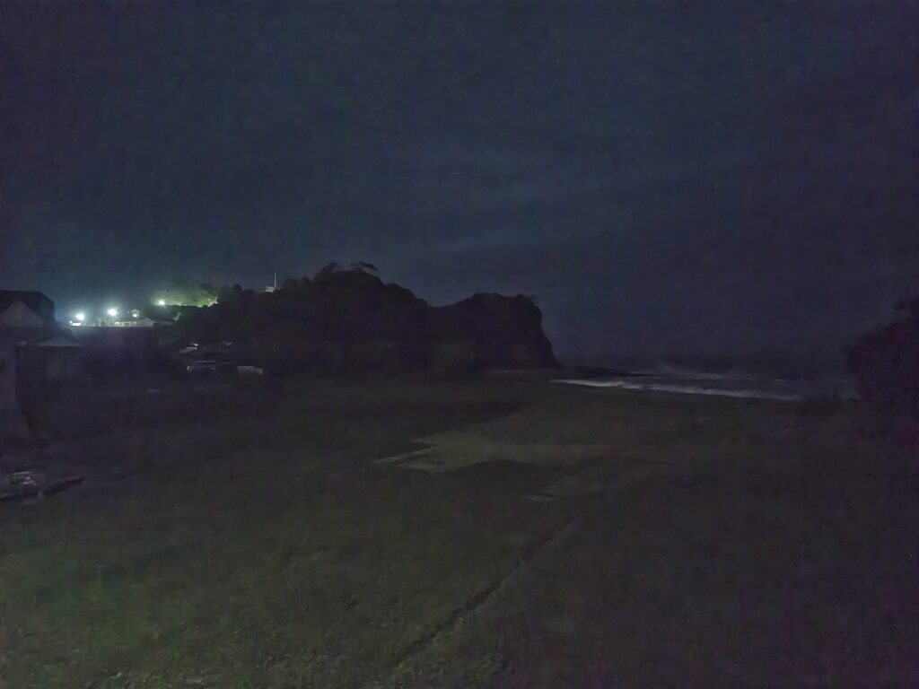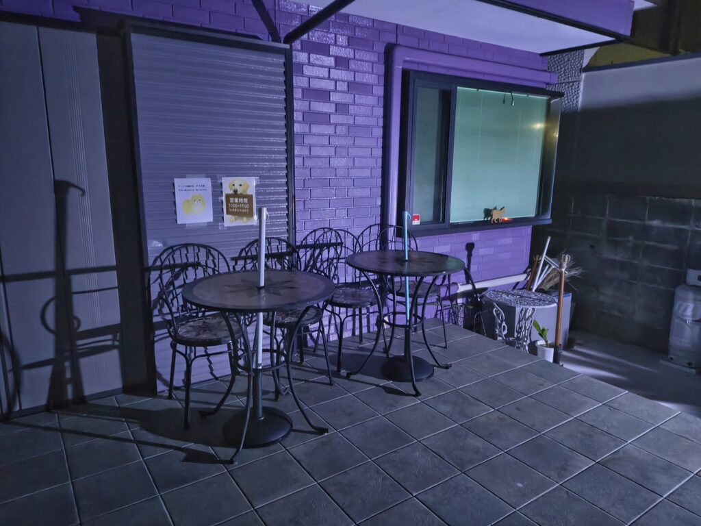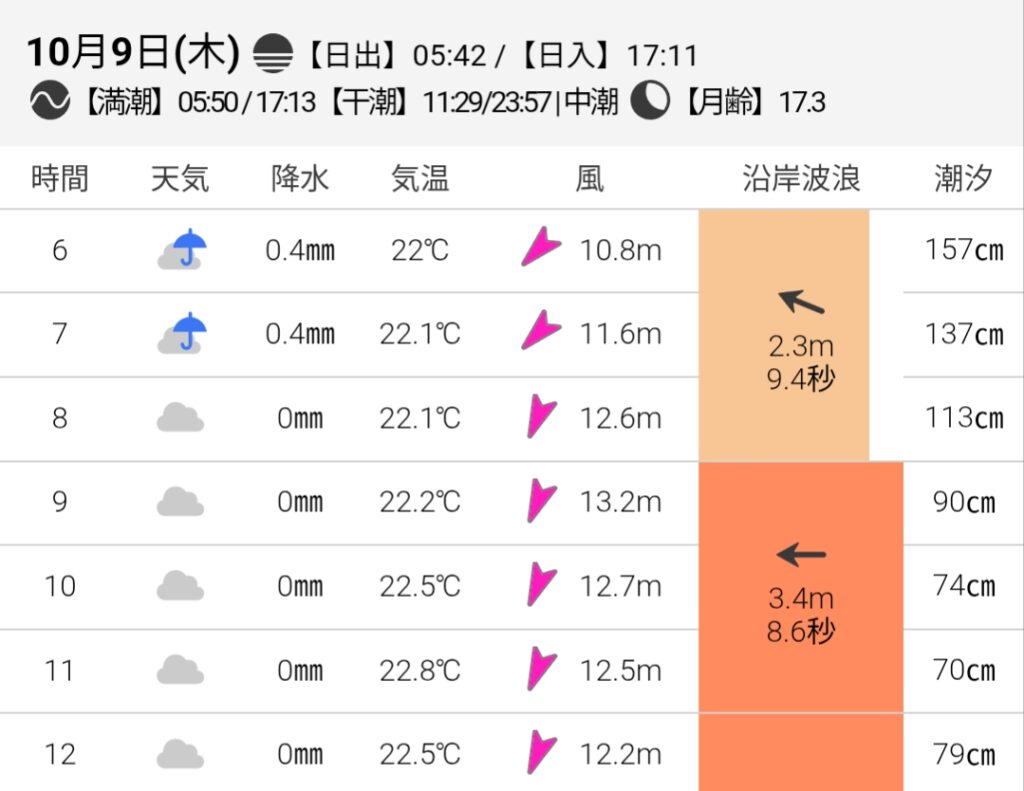 今朝の気温は22℃。午前4時前から北東の風が強まり、雨もわずかに降りはじめました。接近中の台風22号は「風台風」で、きょう昼過ぎには大原港付近では13m/sほどの強い風が吹き荒れる予報です。ミラドールも「たぐりゃ」からの風に備え、テラスの椅子やテーブルを壁際へ寄せて準備を整えました。