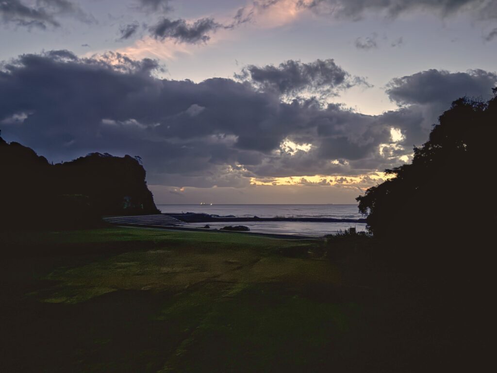今朝の気温は16℃。天気予報では昨日より少し高く、最高気温は26℃とのこと。明日も24℃と穏やかな陽気が続きますが、月曜日になると寒気が入り込み、空の色や風の感触にも秋の深まりを感じる頃となりそうです。最高気温が20℃を下回る日も増え、朝夕の空気はひんやりと澄んでいくのでしょう。季節の移ろいを肌で感じるこの時期、テラスから眺める海の表情も日ごとに変わっていきます。