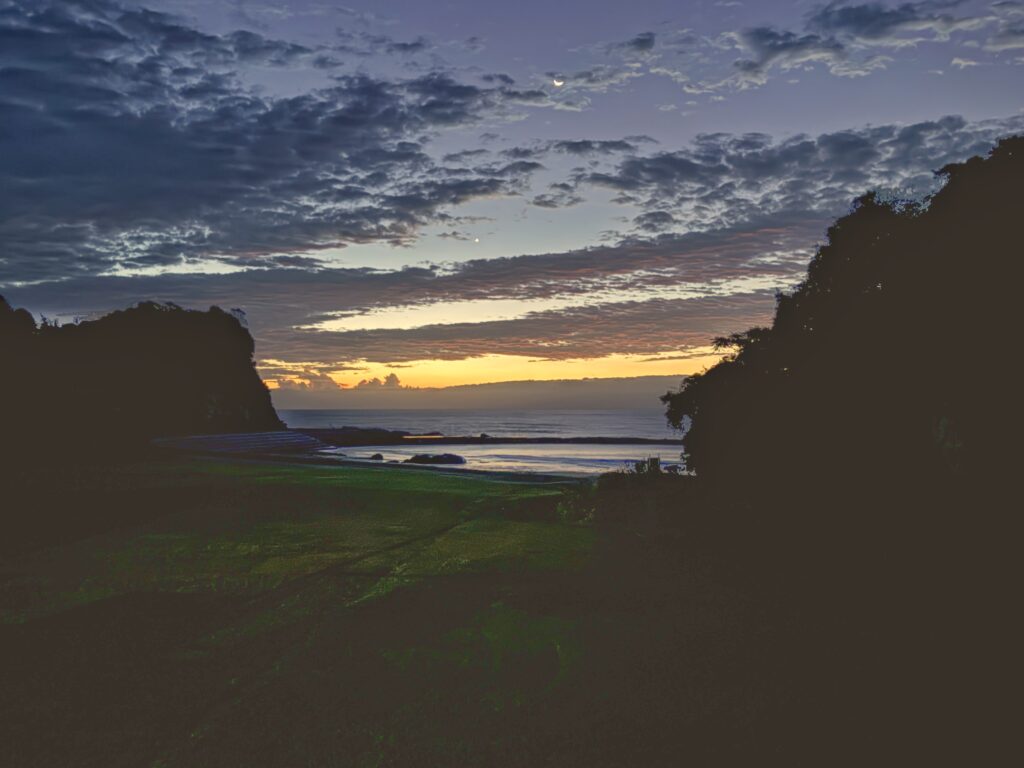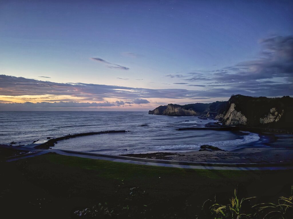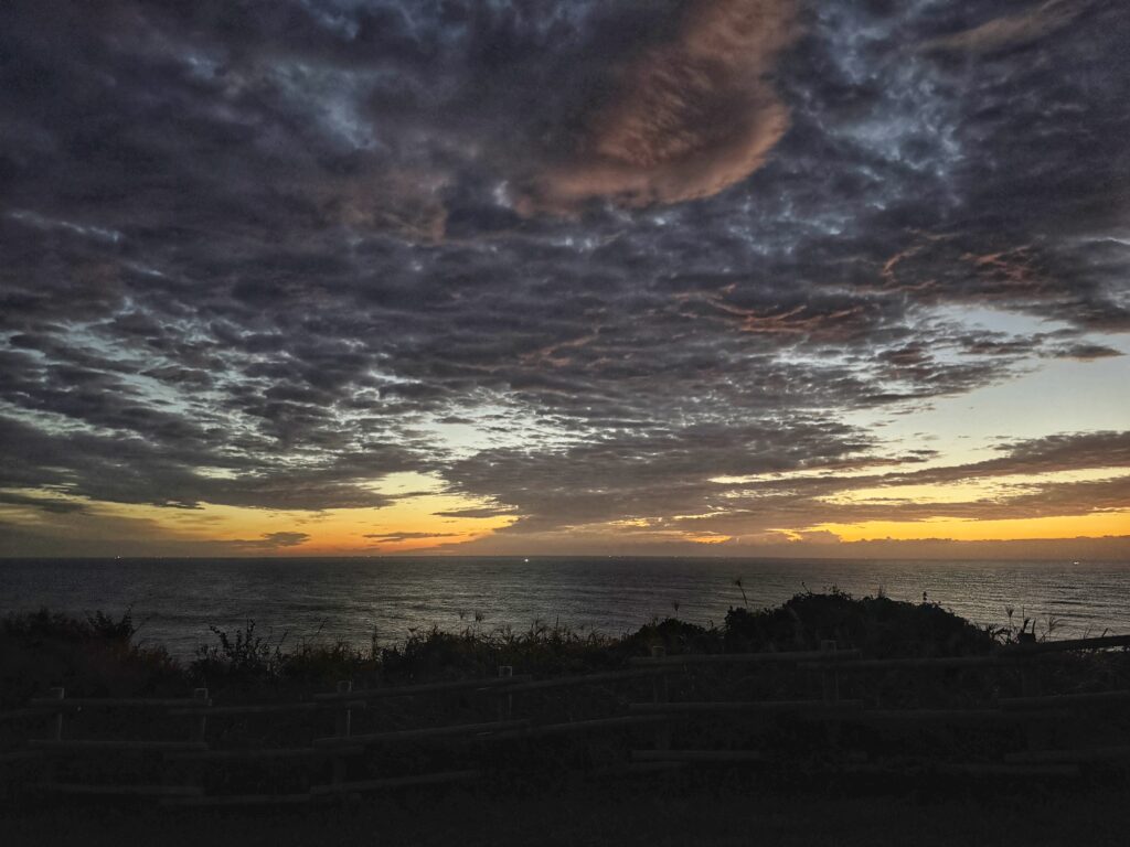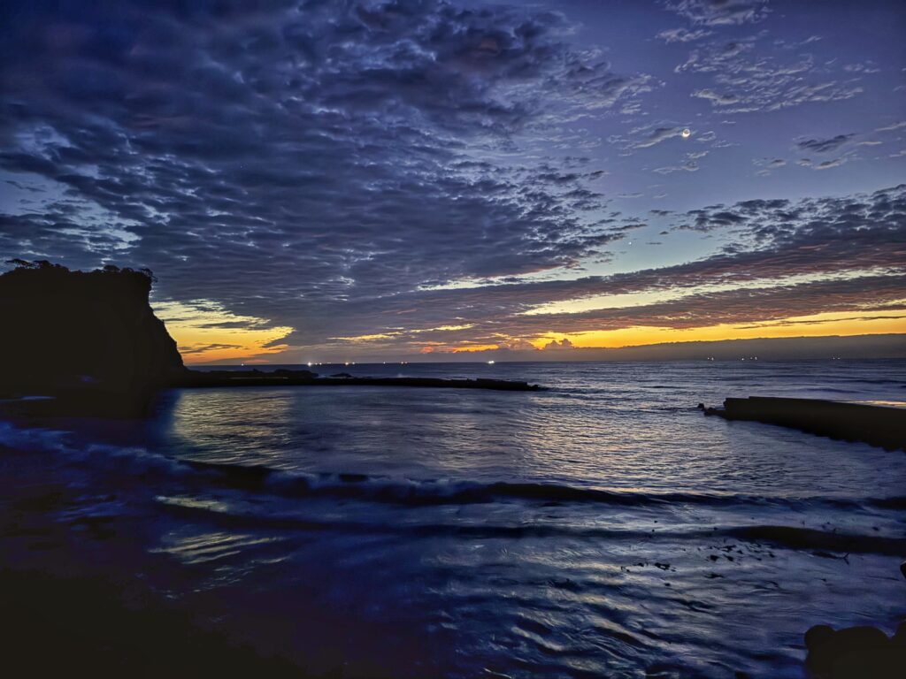 今朝の気温は21℃。少し前の予報では朝から雨のはずでしたが、夜明けの空は見事に裏切ってくれました。雲の切れ間から差す光が、静かな海面に淡く映り、波の音が一日の始まりを告げています。台風22号の前から響いていた海鳴りも、今朝は静まり、澄みわたる潮騒だけが耳に届きます。