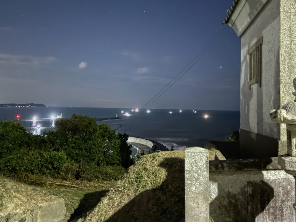 今朝の気温も8℃。今日は午後から曇るようですが、概ね穏やかな天気になりそうです。遊漁船(釣り船)のお休みも終わり、港や沖には灯りが並び、夜明け前の海をやさしく照らしています。