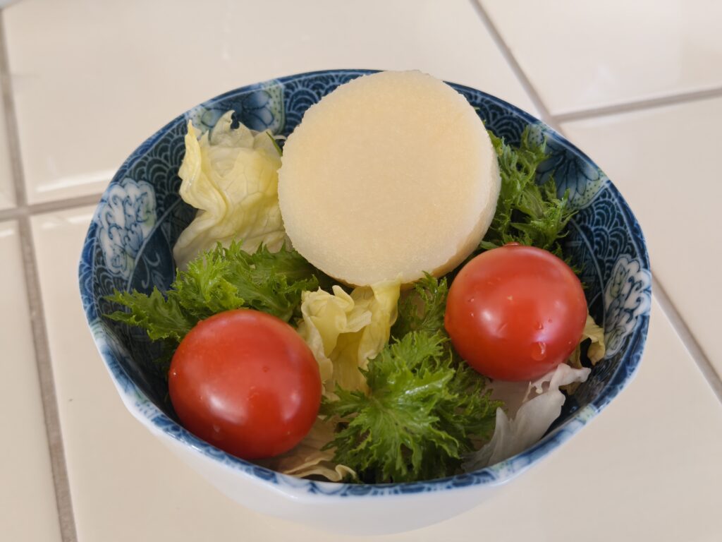 パルミットはヤシの新芽で、ほんのり白く淡い味わいが特徴です。豆腐のようにクセがないので、写真のようにレタスやミニトマトと合わせるだけで、普段のサラダにさりげない変化を添えてくれます。オリーブオイルや塩などシンプルな味付けで十分、森から来た新しい食感が食事に自然と溶け込みます。