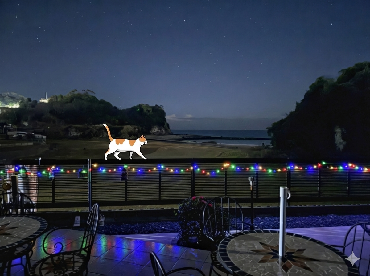 冷たい季節の海の風景を、暖かい店内から眺めにいらしてください。